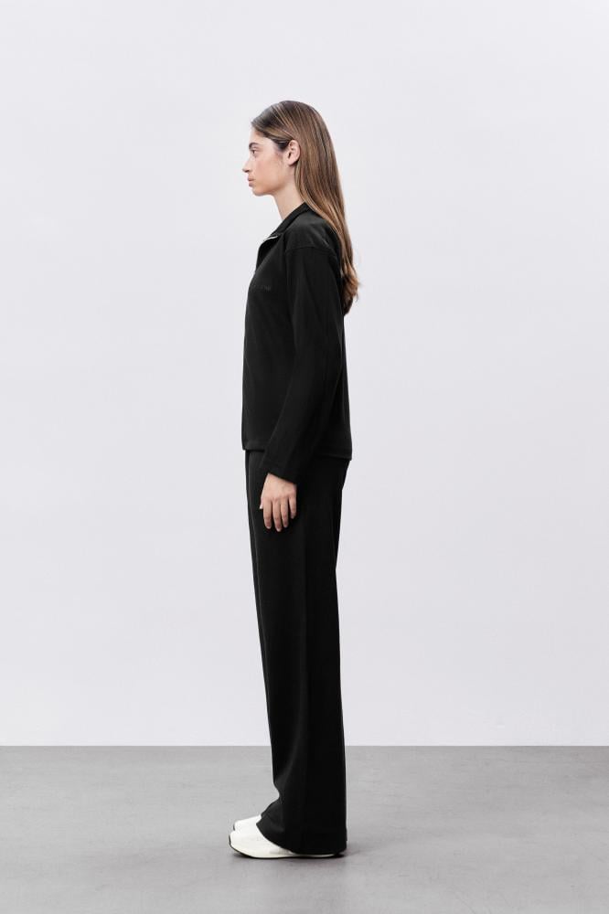 بنطال نسائي مصنوع من قماش البيكيه أزرق بسحاب كامل — 83% قطن و17% بوليستر لنعومة ومتَانة تدوم.