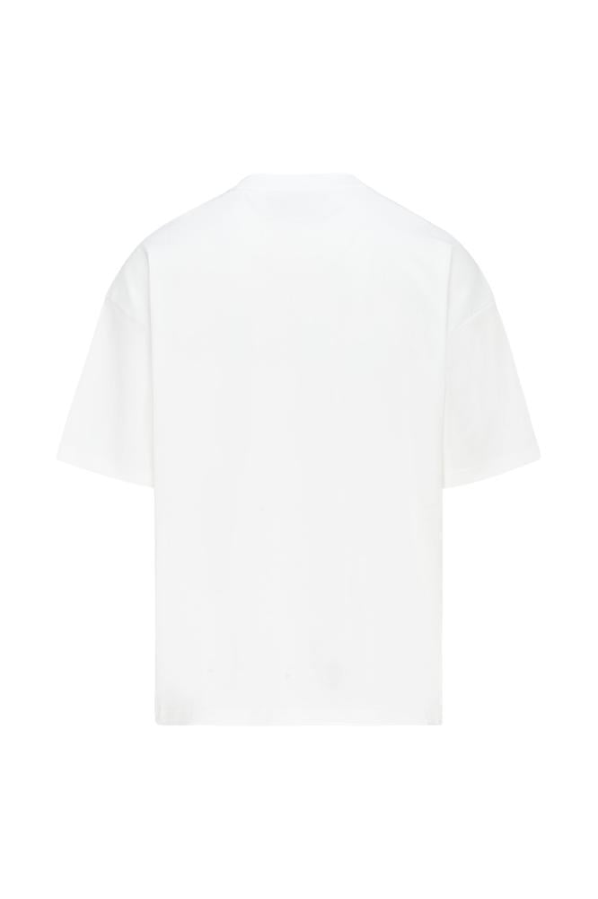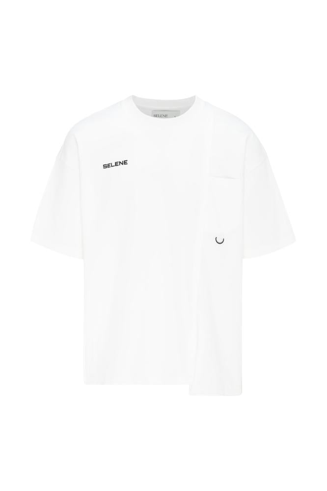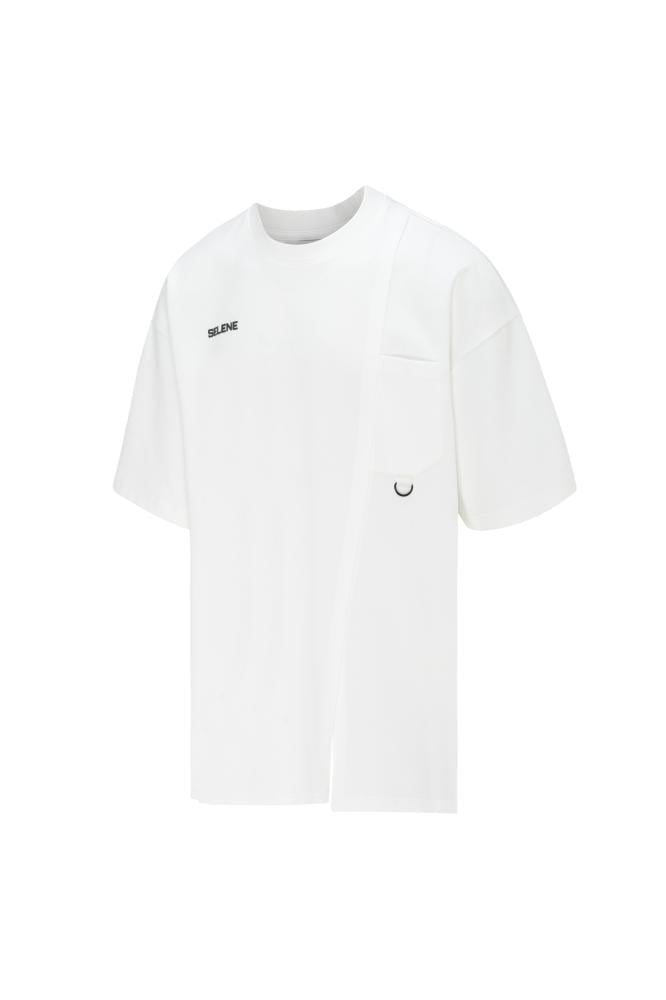 تيشيرت أوفرسايز بجيب وخياطة غير متماثلة للجنسين - أوف وايت