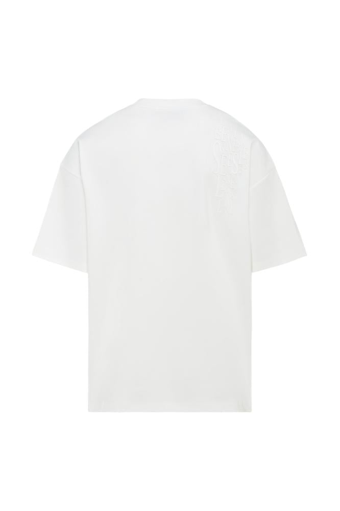 تيشيرت أوفرسايز مطرز بتصميم بسيط للجنسين - أبيض