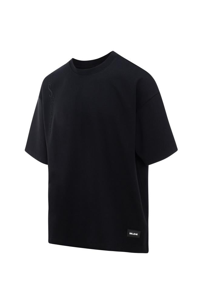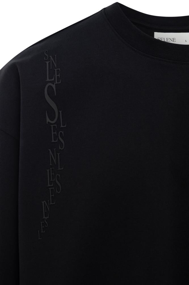 تيشيرت أوفرسايز مطرز بتصميم بسيط للجنسين - أسود