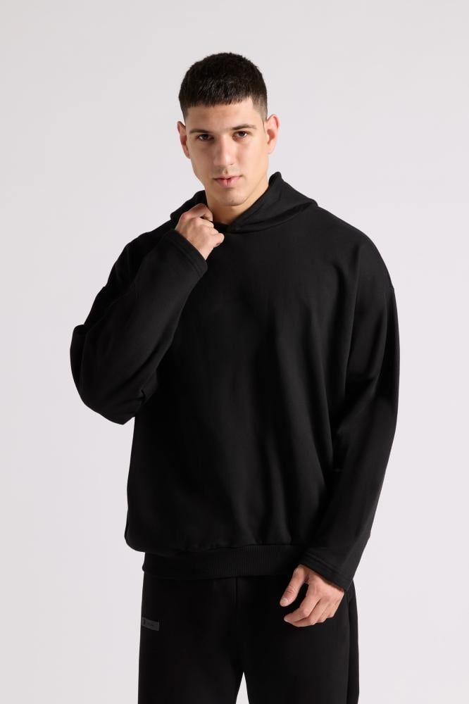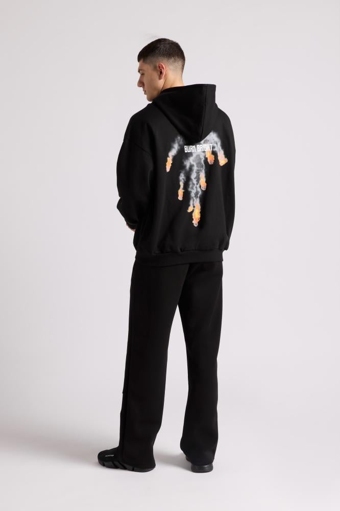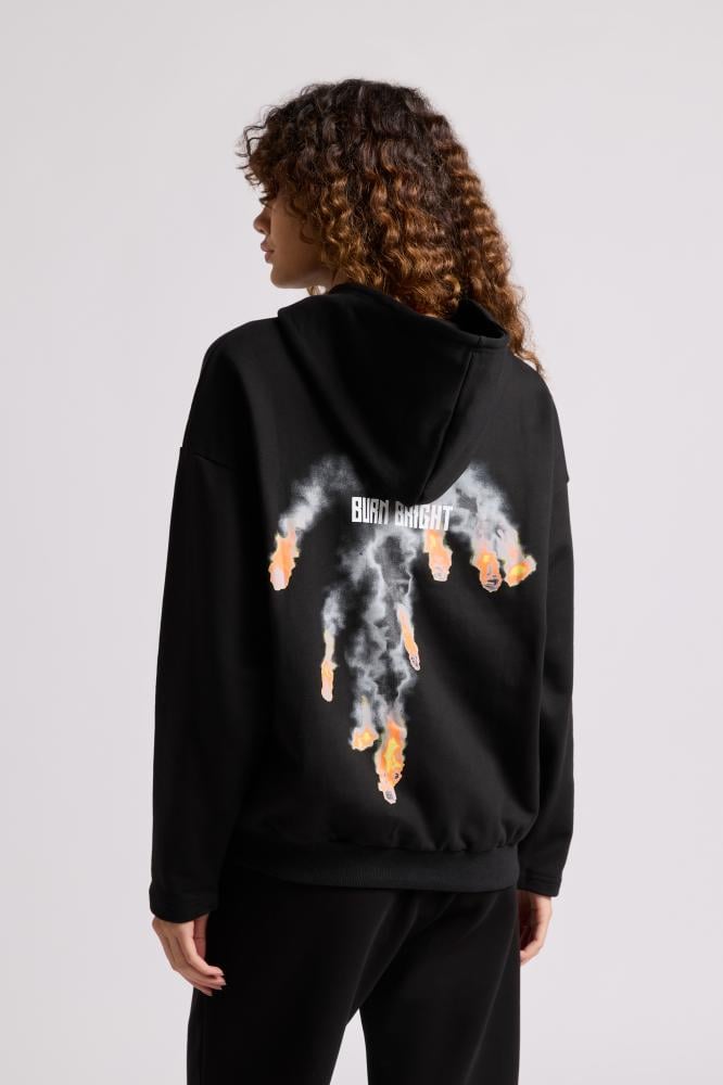 هودي بطباعة وقصة واسعة Acid Wash للجنسين أسود
