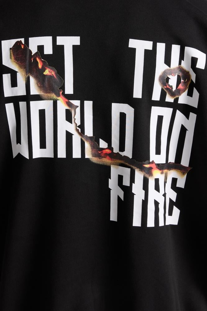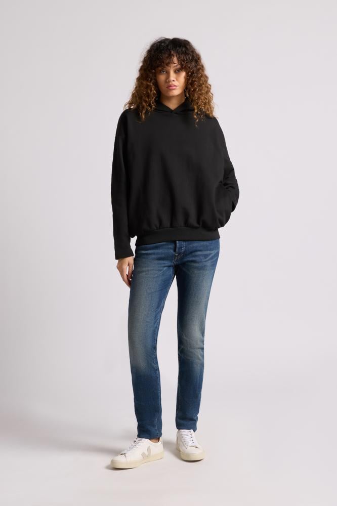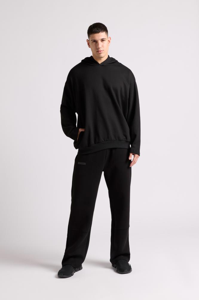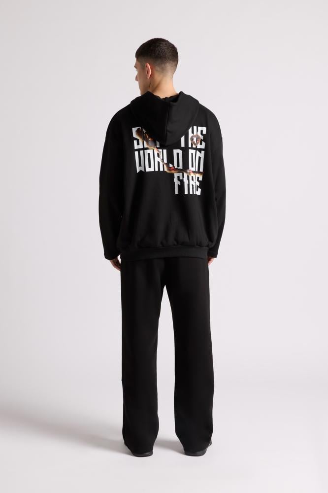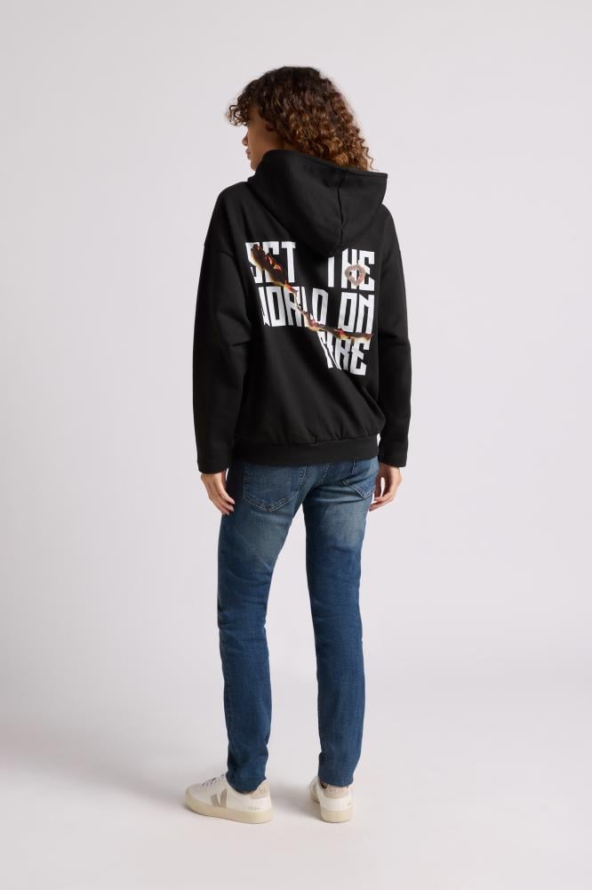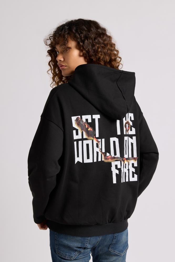 هودي بطباعة وقصة واسعة Acid Wash للجنسين أسود