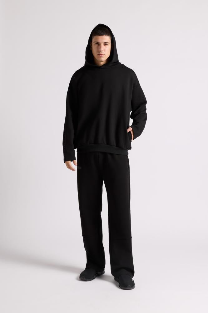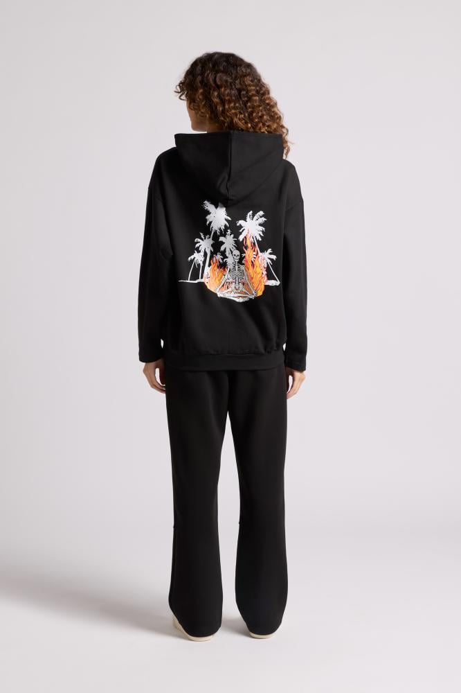 هودي بطباعة وقصة واسعة Acid Wash للجنسين أسود