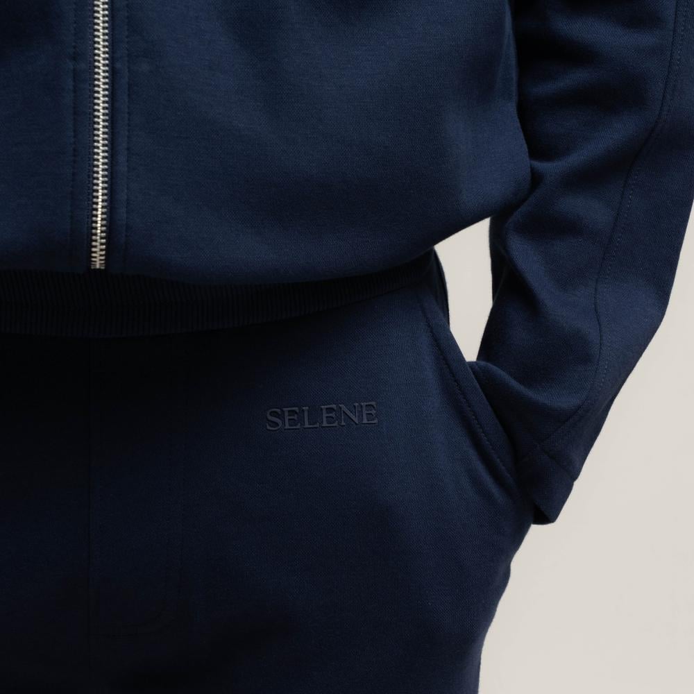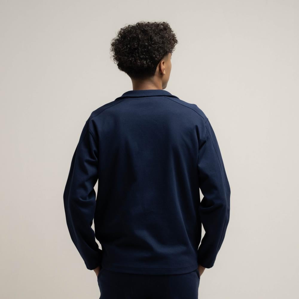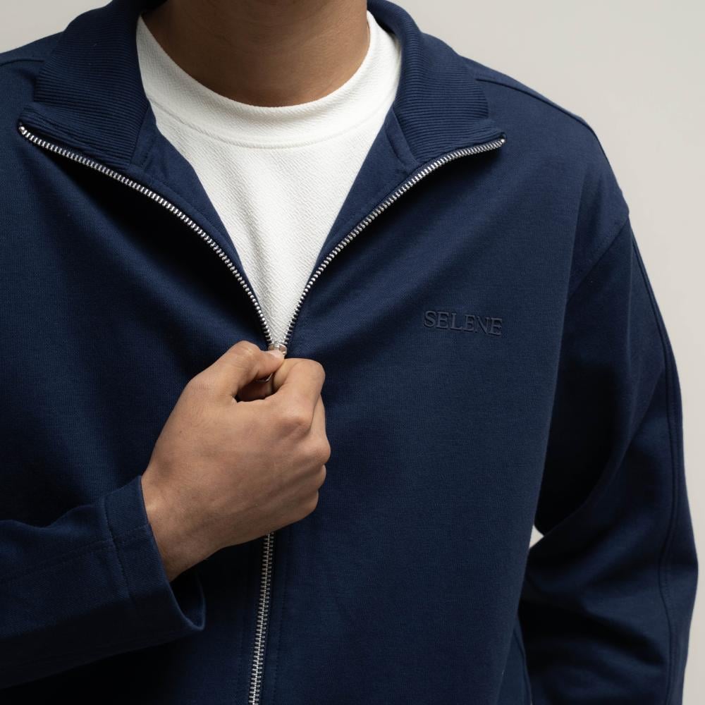 جاكيت رجالي مصنوع من قماش البيكيه أزرق بسحاب كامل — 83% قطن و17% بوليستر لنعومة ومتَانة تدوم.