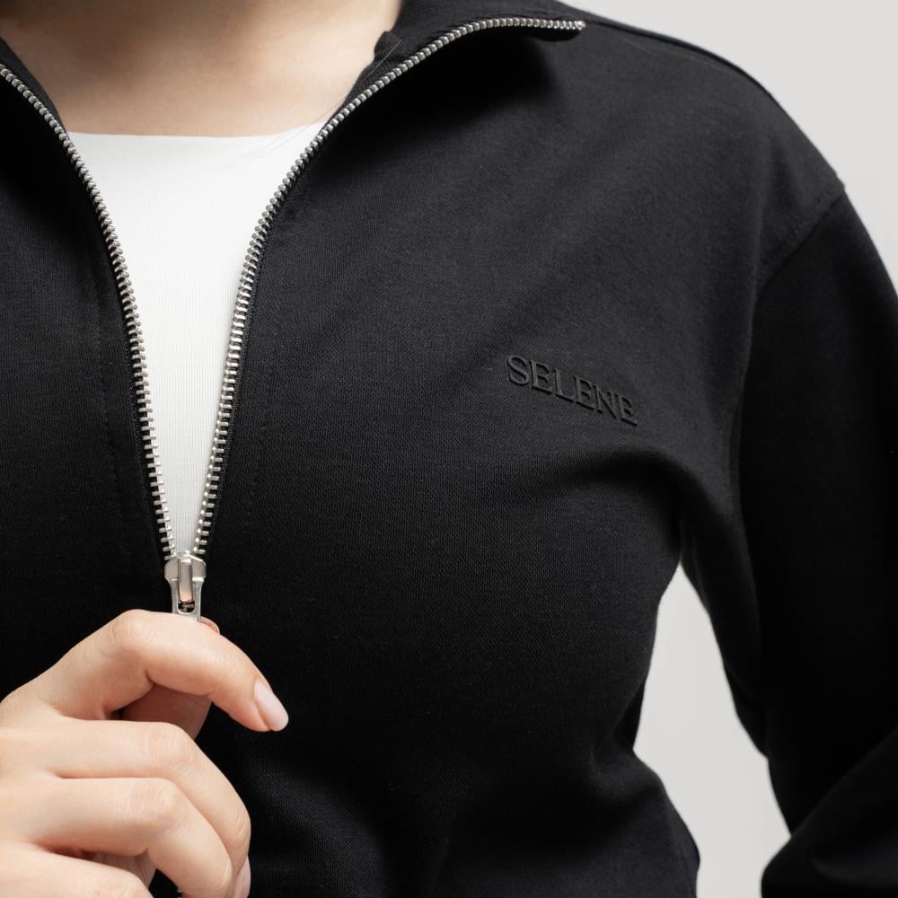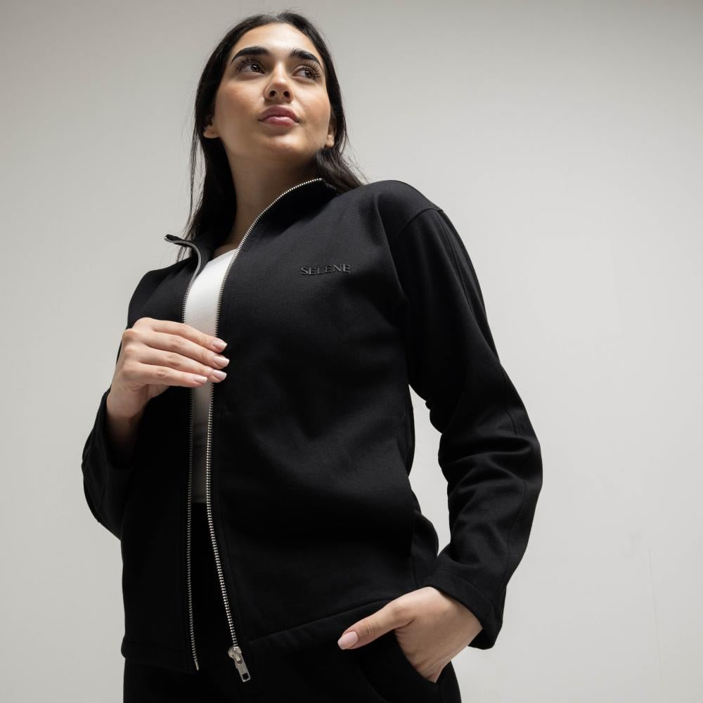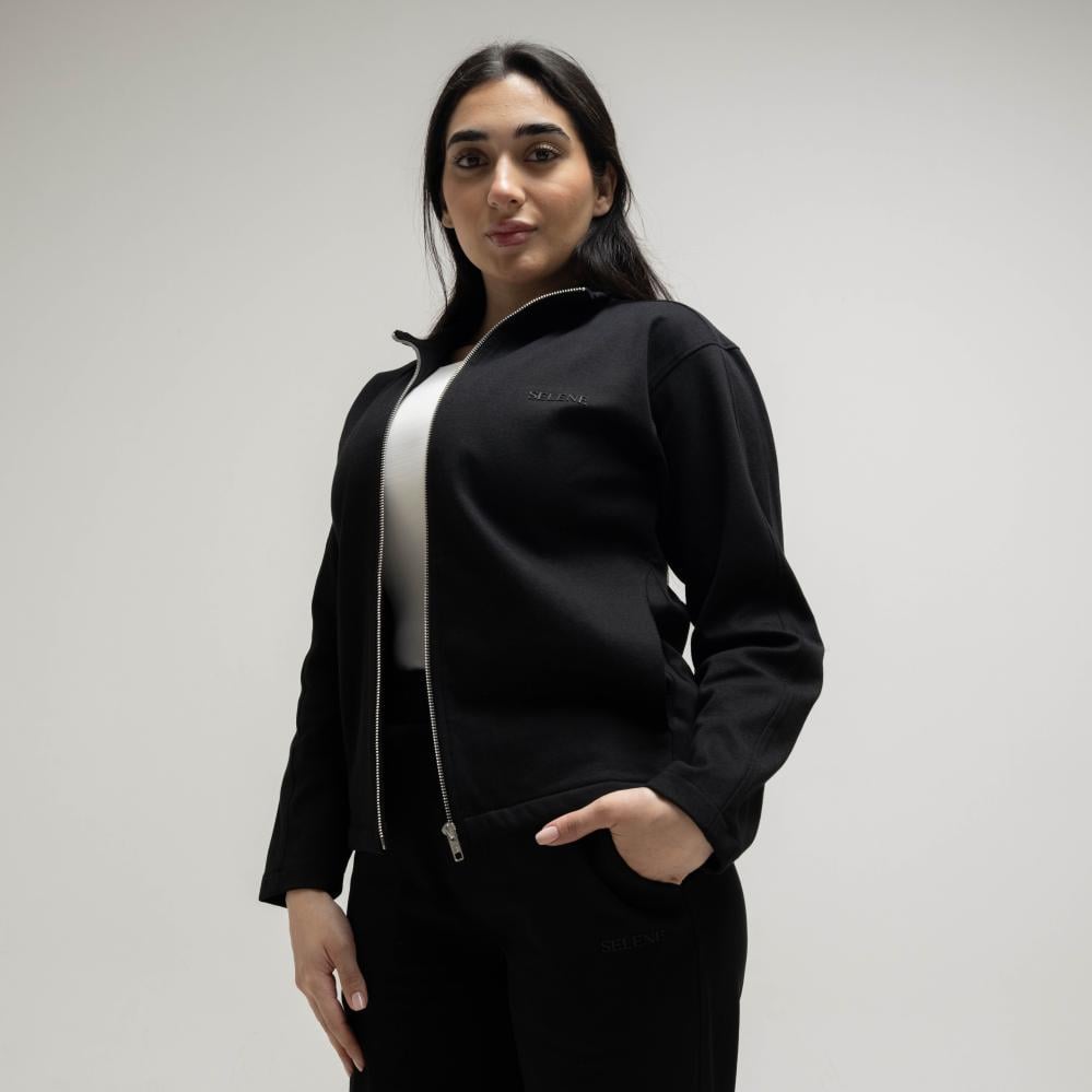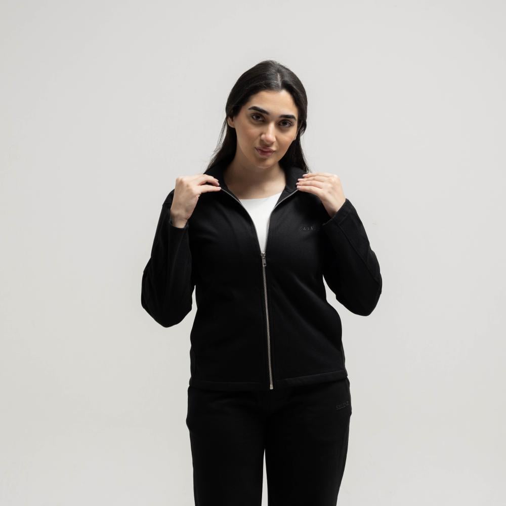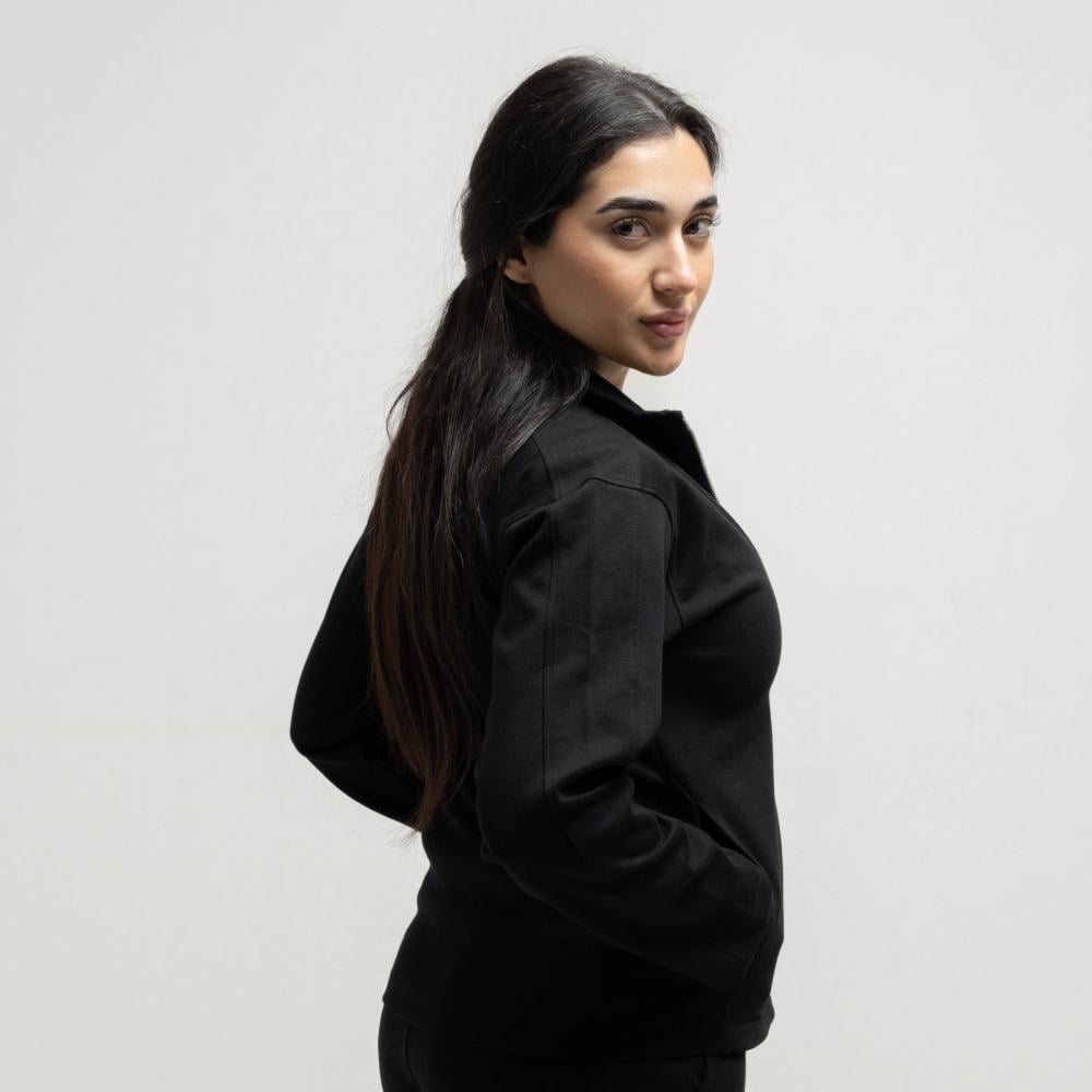 جاكيت نسائي مصنوع من قماش البيكيه أزرق بسحاب كامل — 83% قطن و17% بوليستر لنعومة ومتَانة تدوم.