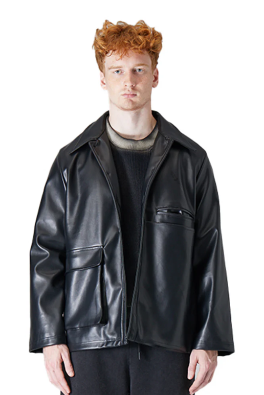 جاكيت جلد بقصة واسعة للجنسين أسود - ستايل الأعمال