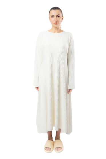 فستان نسائي بقصة اي لاين، بأكمام طويلة وطول منتصف الساق اوف وايت