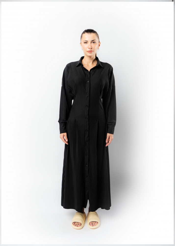 تستمر الفساتين ذات الأكمام الطويلة والرقبة العالية في الظهور بقوة في عام 2024، وتتميز هذه الفساتين بأسلوبها الأنيق والرصين، و هي خيار رائع للنساء اللواتي يرغبن في إظهار أنوثتهن، وبالأخص الفستان الأسود الكلاسيكي، هذا الفستان هو قطعة أساسية في خزانة ملابس كل امرأة، يمكن ارتداؤه في مجموعة متنوعة من المناسبات، بما في ذلك العمل والمناسبات الرسمية.