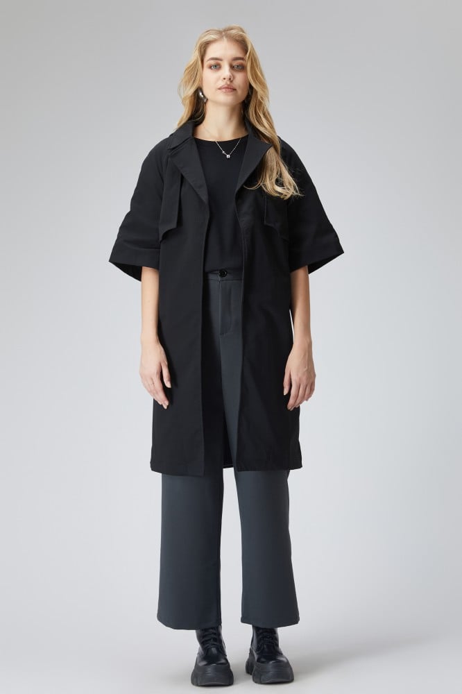 جاكيت أواي طويل أسود من متجر سيلين هو جاكيت عصري ومريح مصنوع من مزيج من القطن والبوليستر، يتميز الجاكيت بتصميمه الطويل وذو الياقة المستديرة، كما أنه مزود بجيوب أمامية مزدوجة ومشبك أمامي للإغلاق.