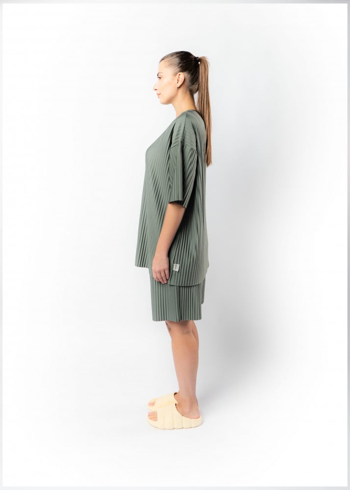 هل تبحث عن التميز في إطلالتك اليومية؟ احصل على تيشرت واسع للجنسين باللون الكاكي من سيلين! تمتاز هذه القطعة بتصميمها العصري والمريح بقصة واسعة تضمن لك حرية الحركة طوال اليوم. صُنِعَت من خامة عالية الجودة تجمع بين 92% فيسكوز مموج و8% إيلاستين لتمنحك الراحة والمتانة. يمكنك ارتداء هذا التيشرت في مختلف المناسبات والتميز بإطلالة رائعة. اجعل هذا التيشرت جزءًا من مجموعتك اليومية واستمتع بالأناقة والراحة في وقت واحد!