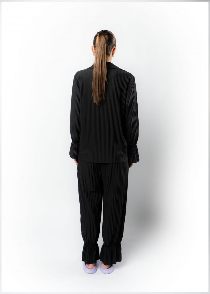 قميص نسائي بأزرار مع أربطة مطاطية عند الرسغين اسود